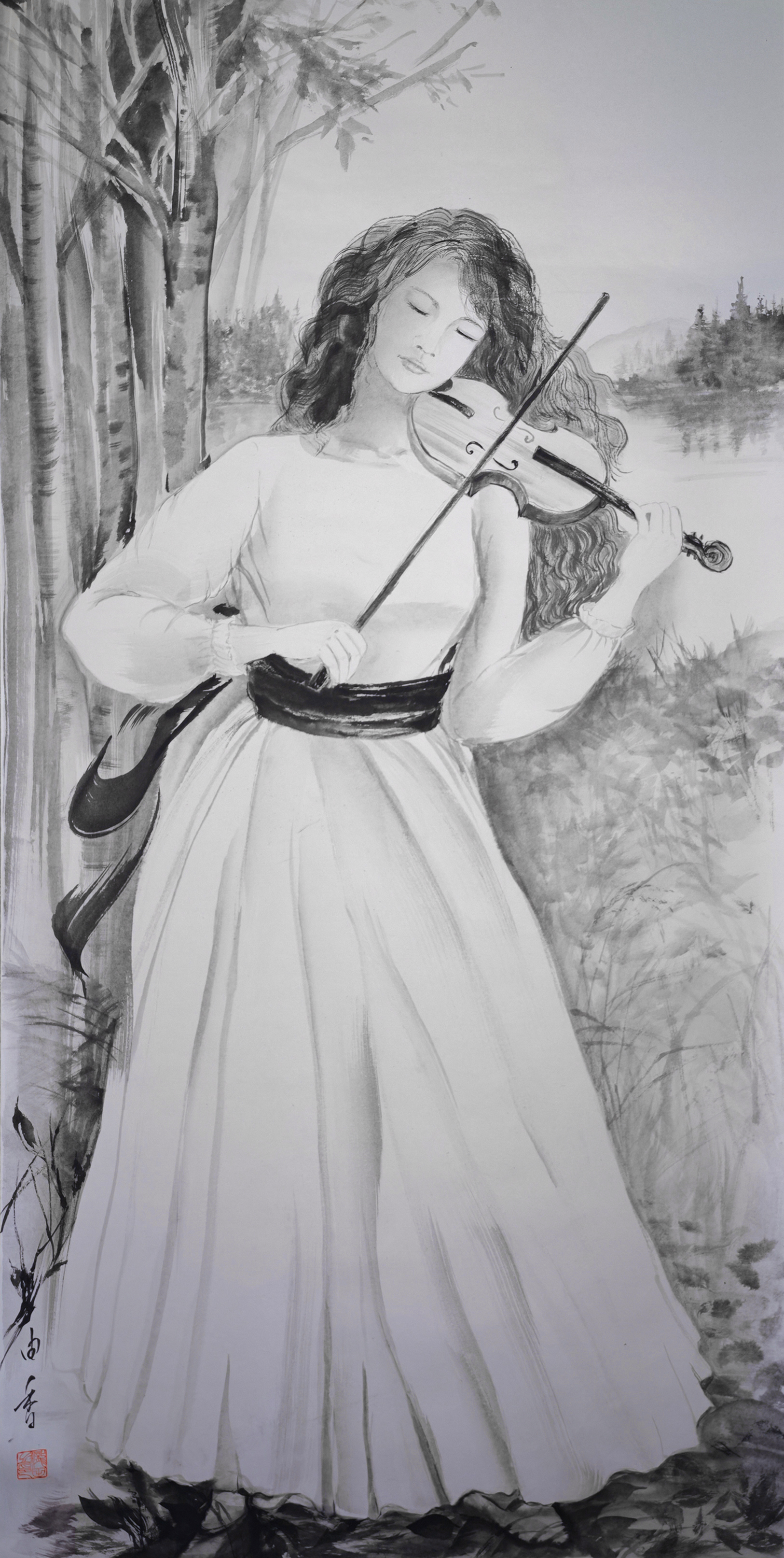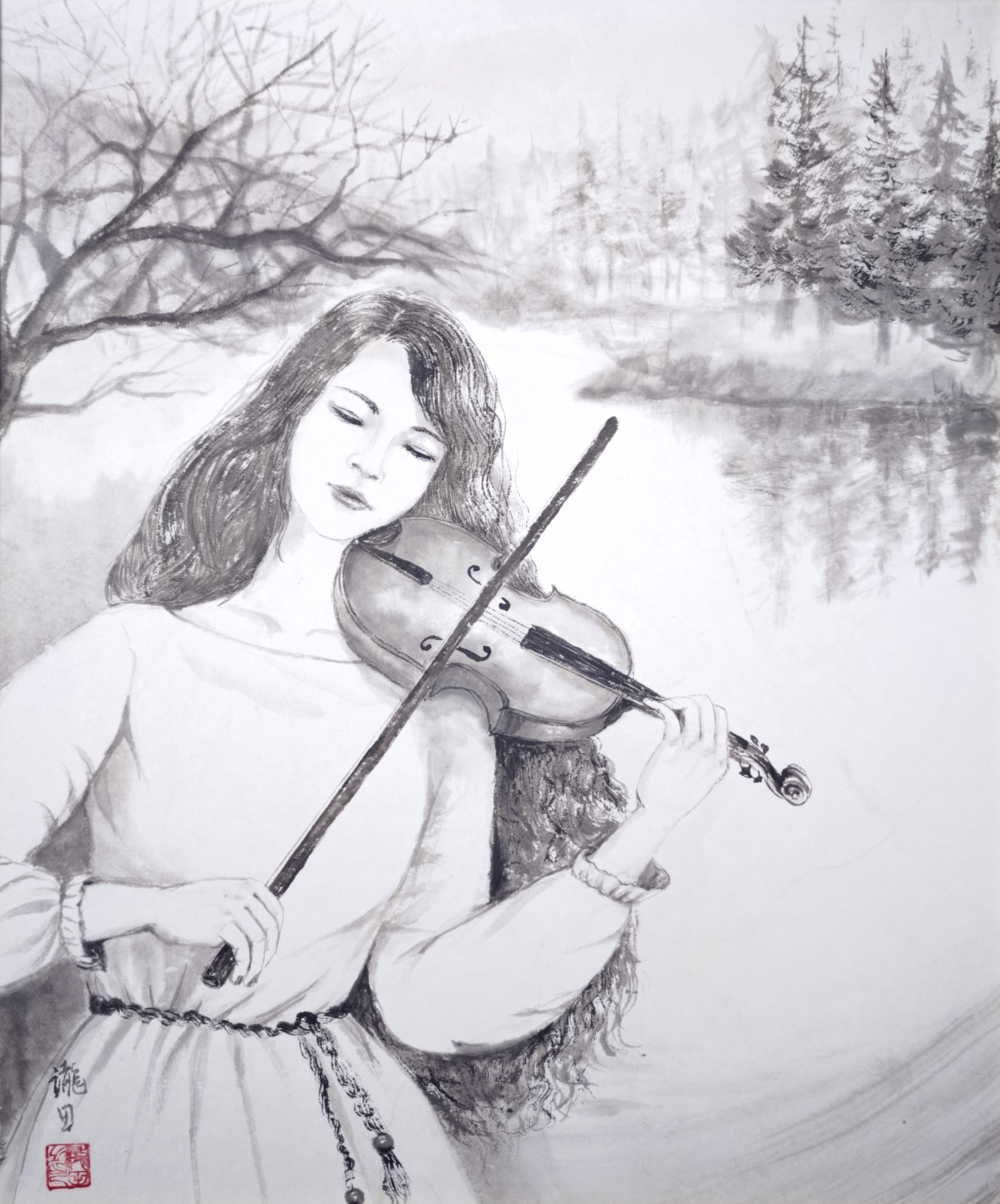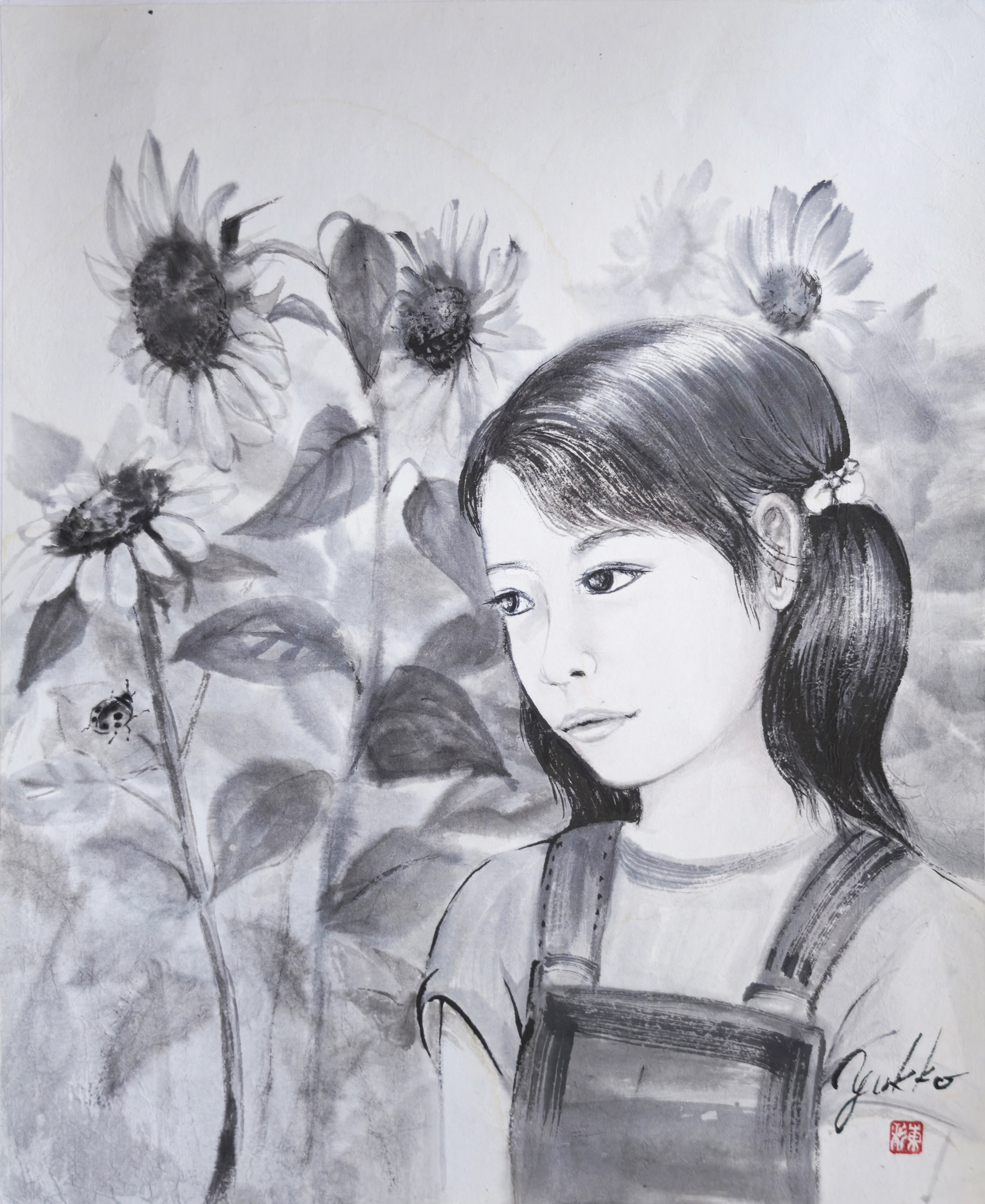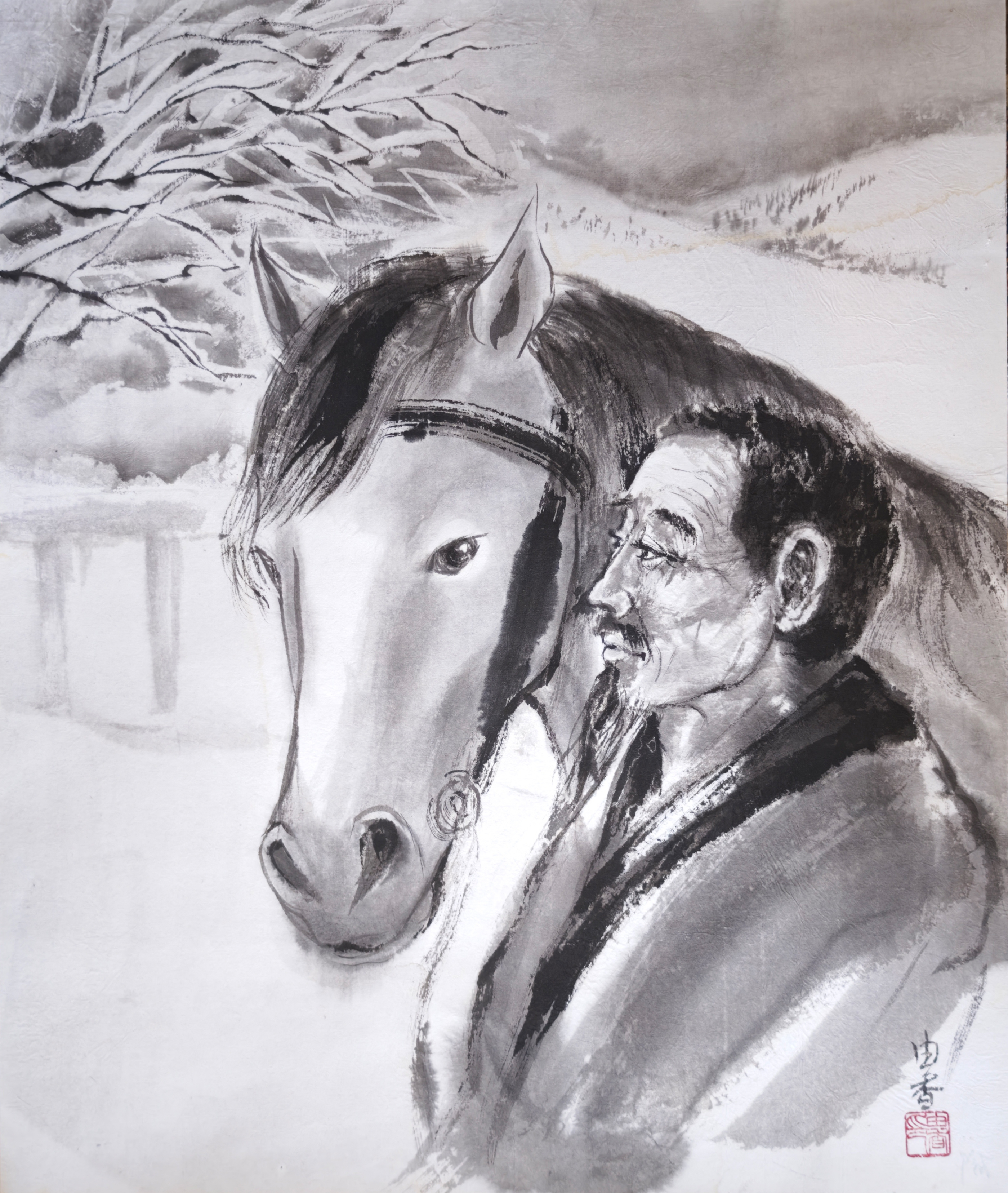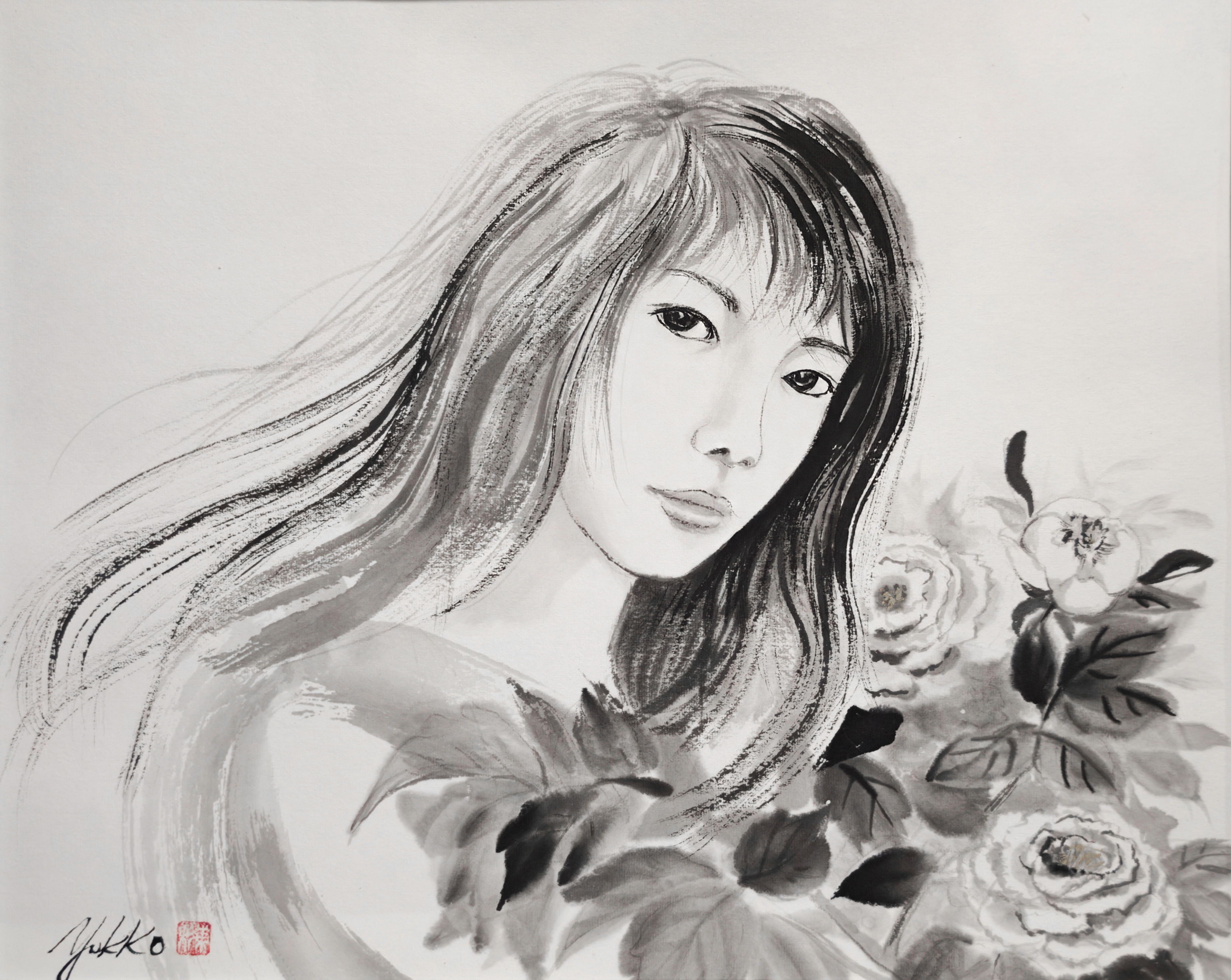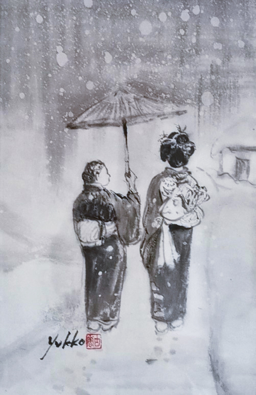 以前から交流のある在日中国人墨絵画家 王子江先生の元で墨絵を学び始める。 アトリエ雄原堂グループ展に作品を出品 |