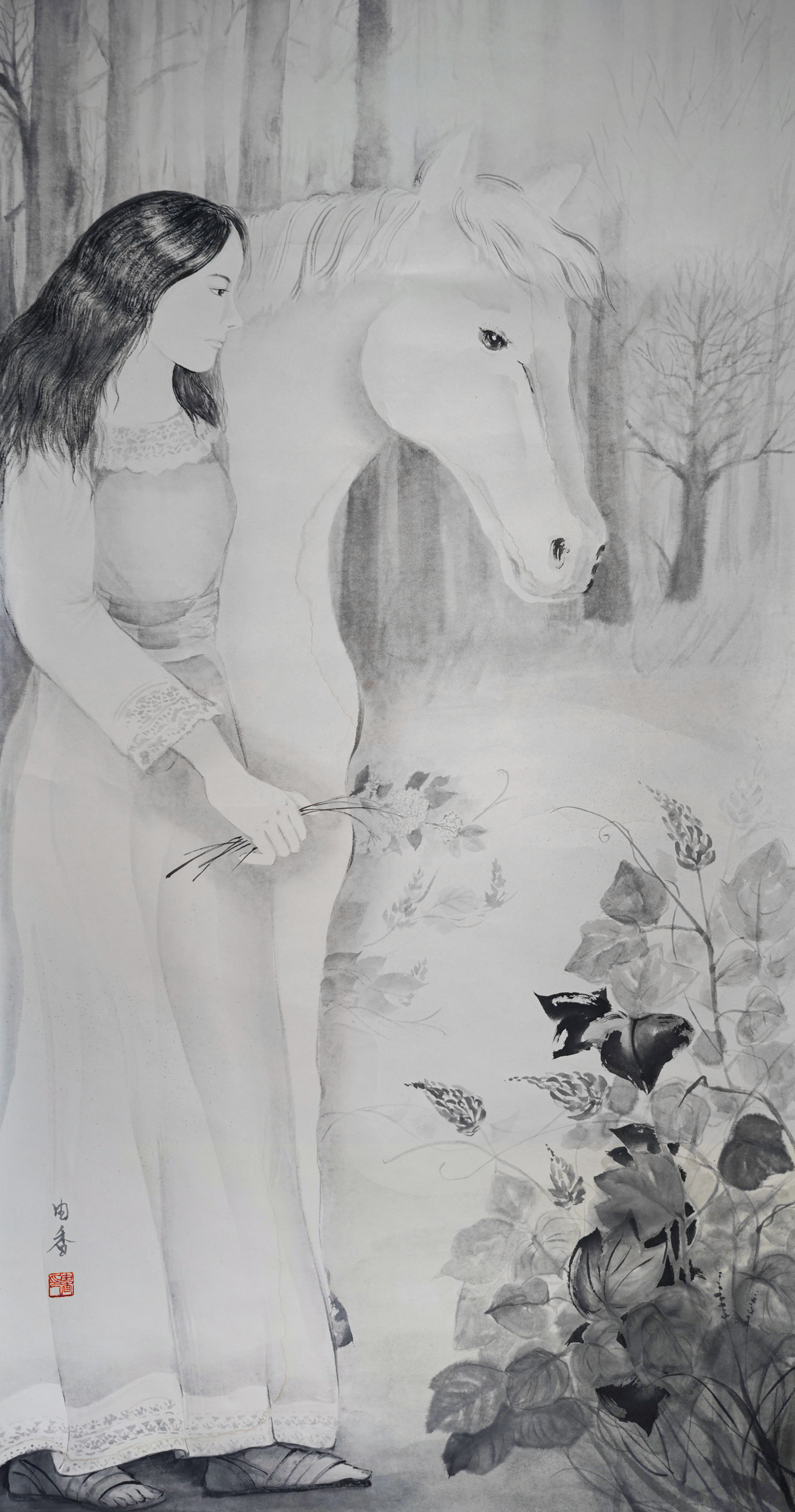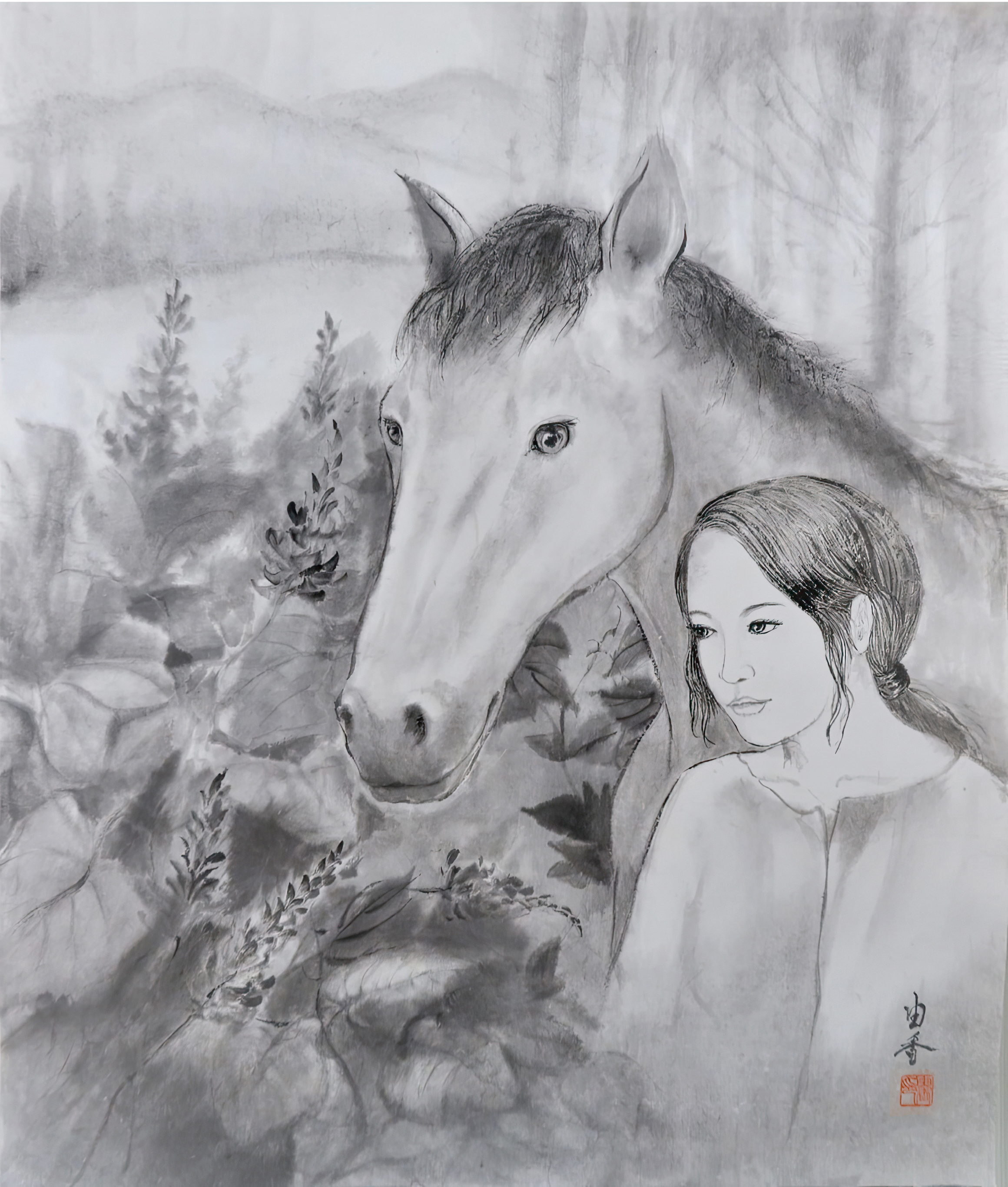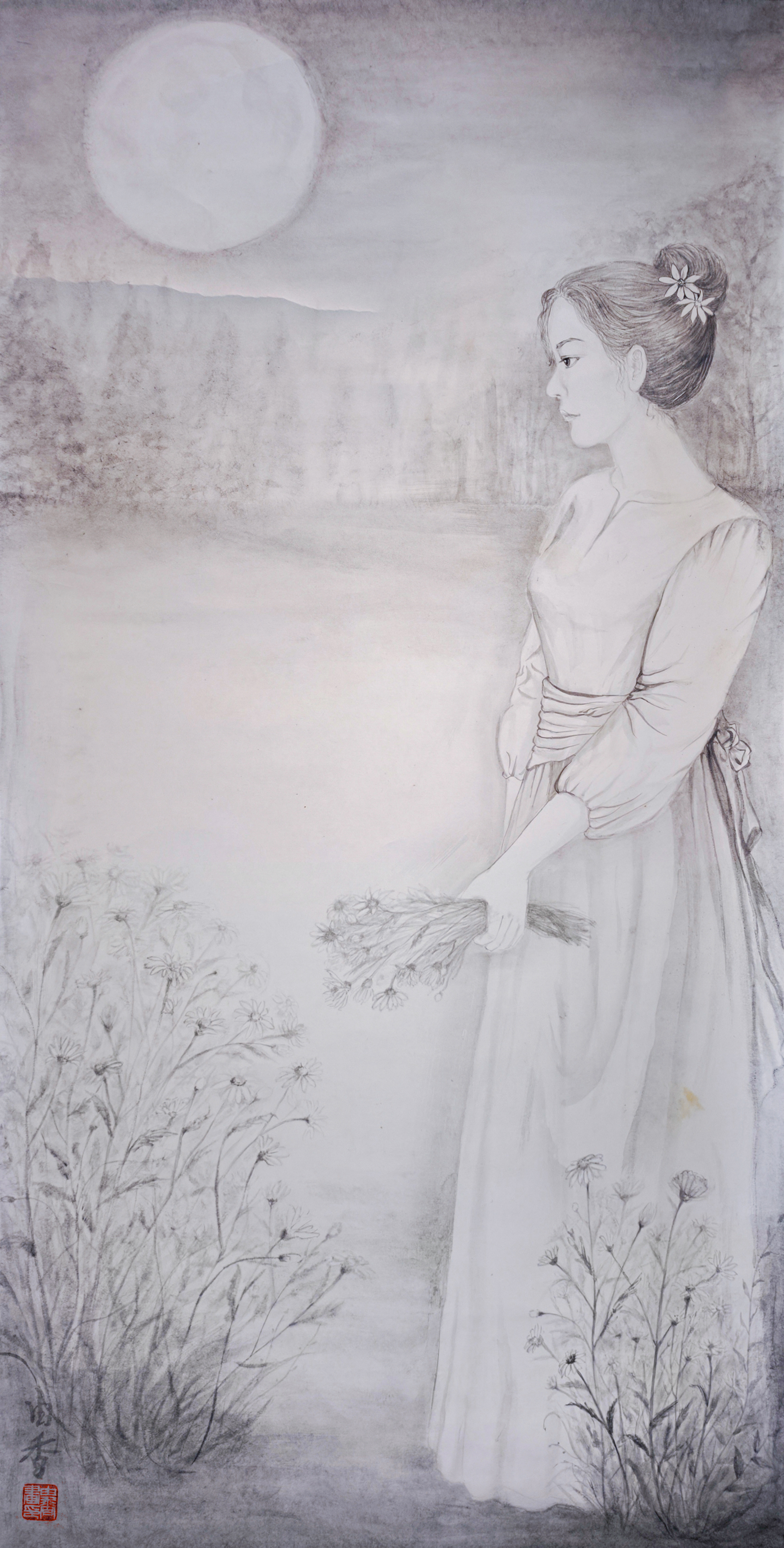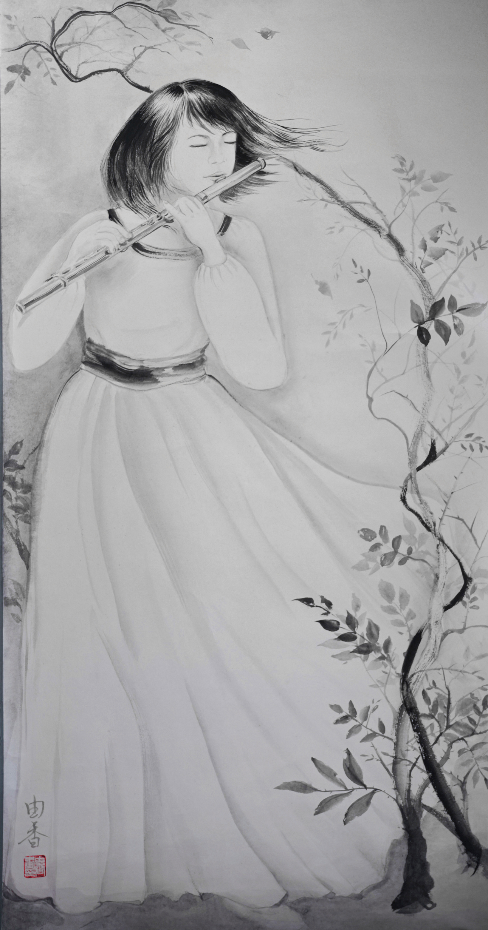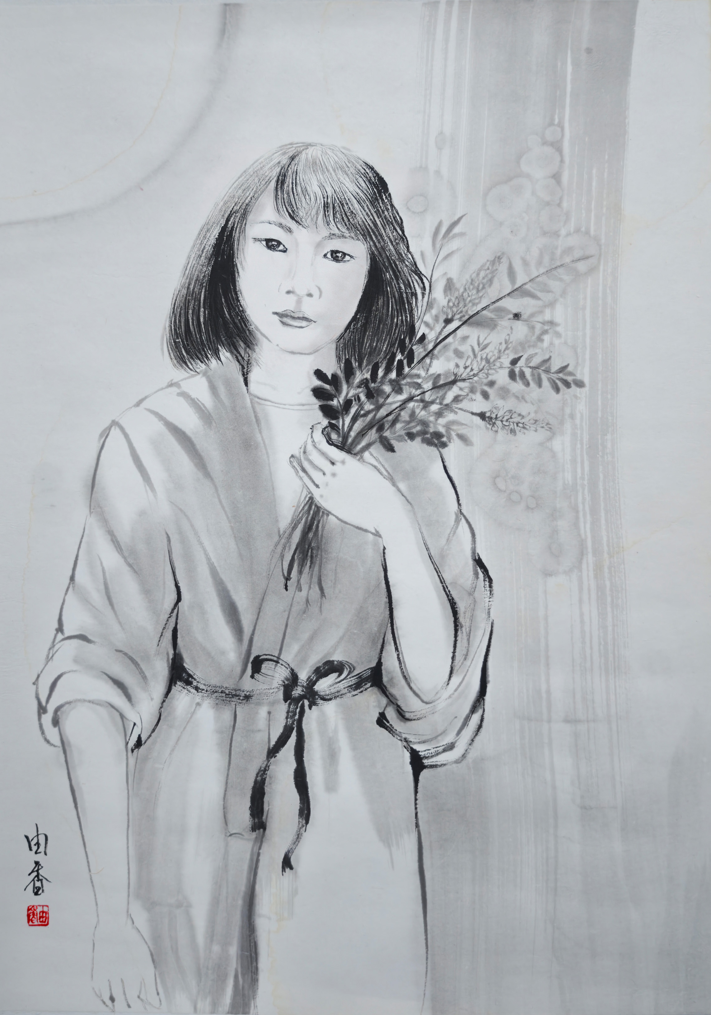 以前から交流のある在日中国人墨絵画家 王子江先生の元で墨絵を学び始める。 アトリエ雄原堂グループ展に作品を出品 |